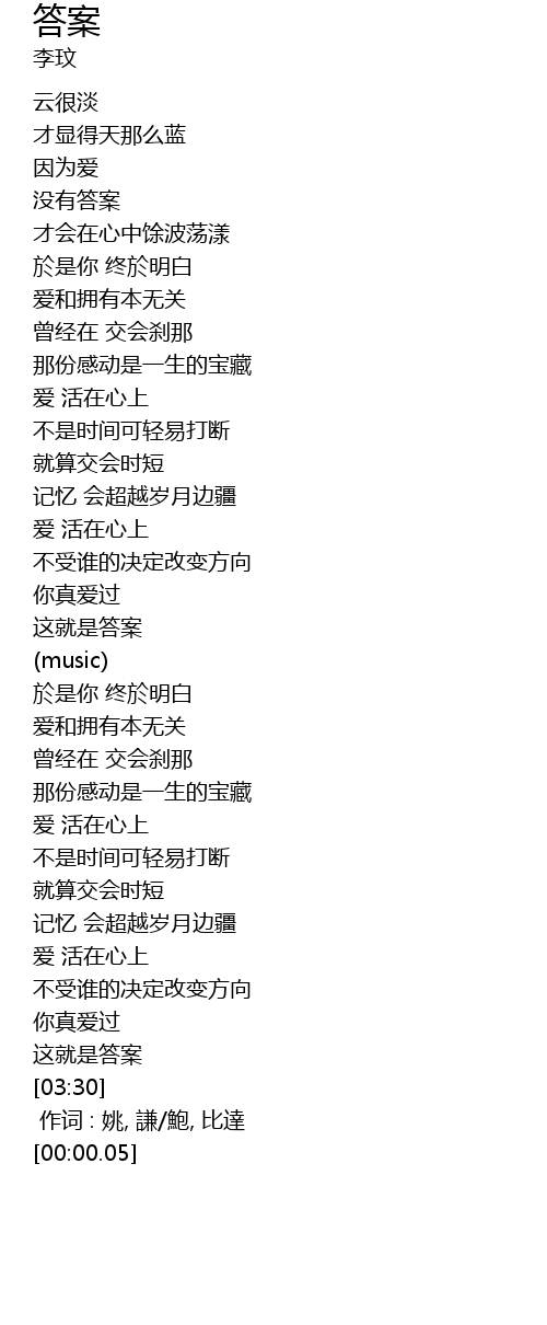 | 歌曲 | 答案 |