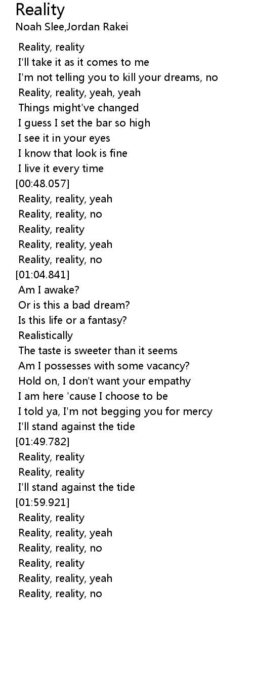 | [00:59.777] | Reality, reality, yeah |