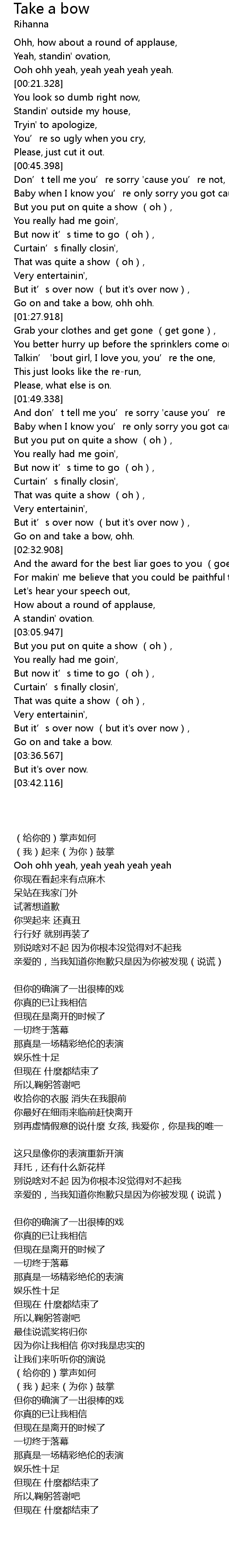 | [01:22.519] | Go on and take a bow, ohh ohh. |