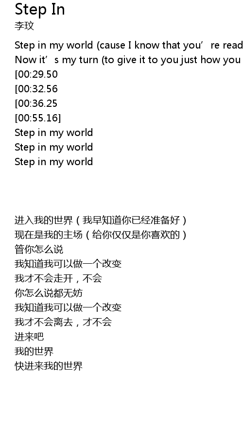 | [00:15.05] | Step in my world (cause I know that you’re ready to ride) |