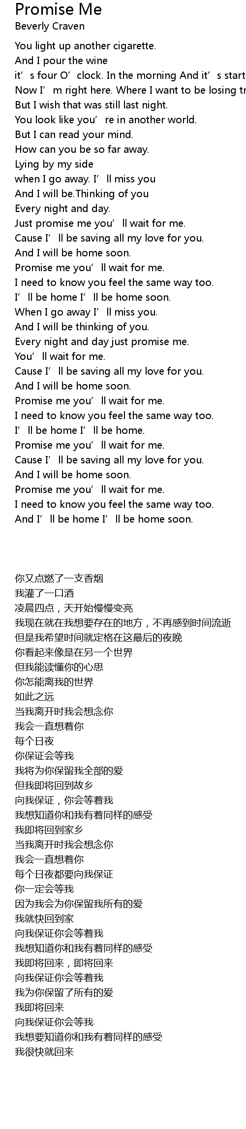 | [02:39.0] | Promise me you' ll wait for me. |
