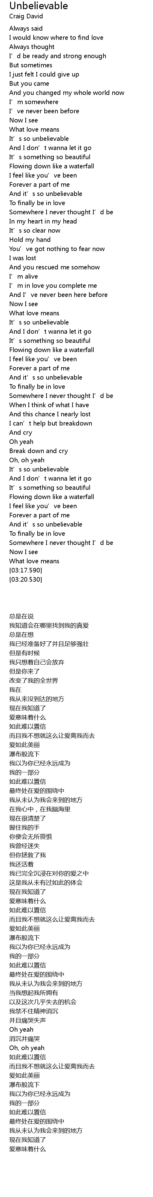 | [03:01.020] | 如此难以置信 |