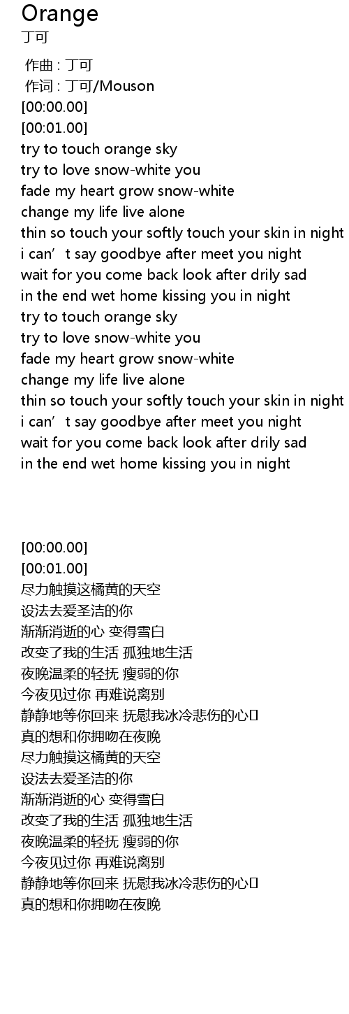 | [00:00.00] | 作词 : 丁可/Mouson |