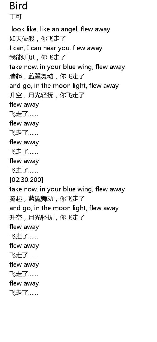 | [00:39.180] | rú tiān shǐ bān, nǐ fēi zǒu le |