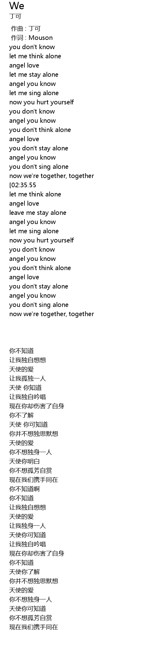 | [02:03.43][02:35.55] | you don' t know |