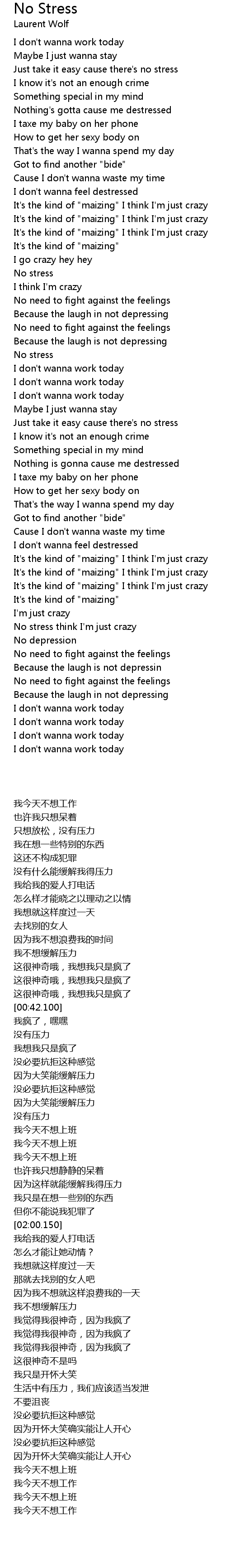 No stress think I'm just crazy |