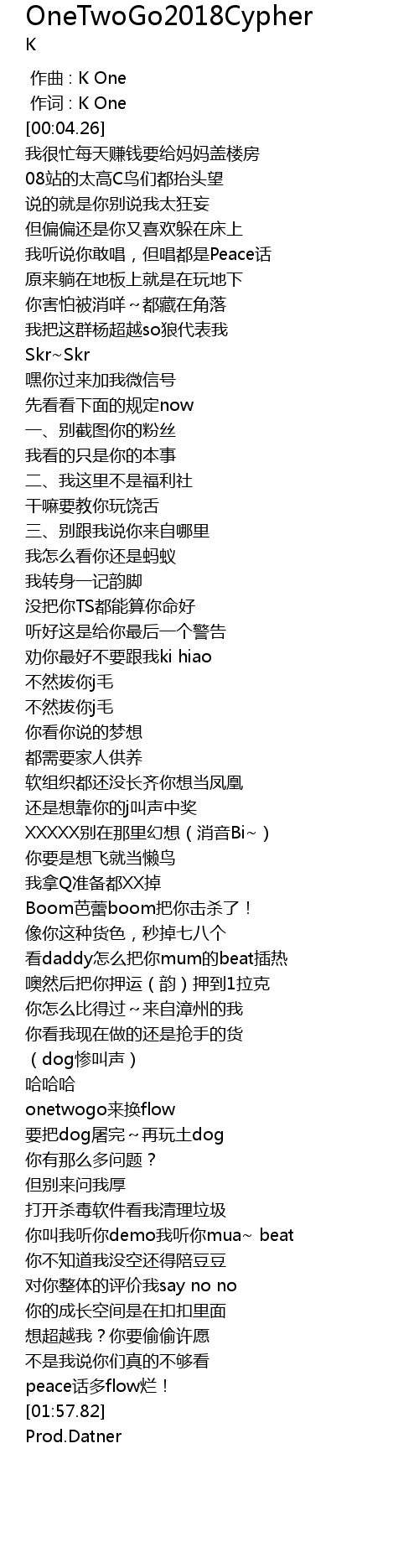 | [01:08.87] | 劝你最好不要跟我ki hiao |