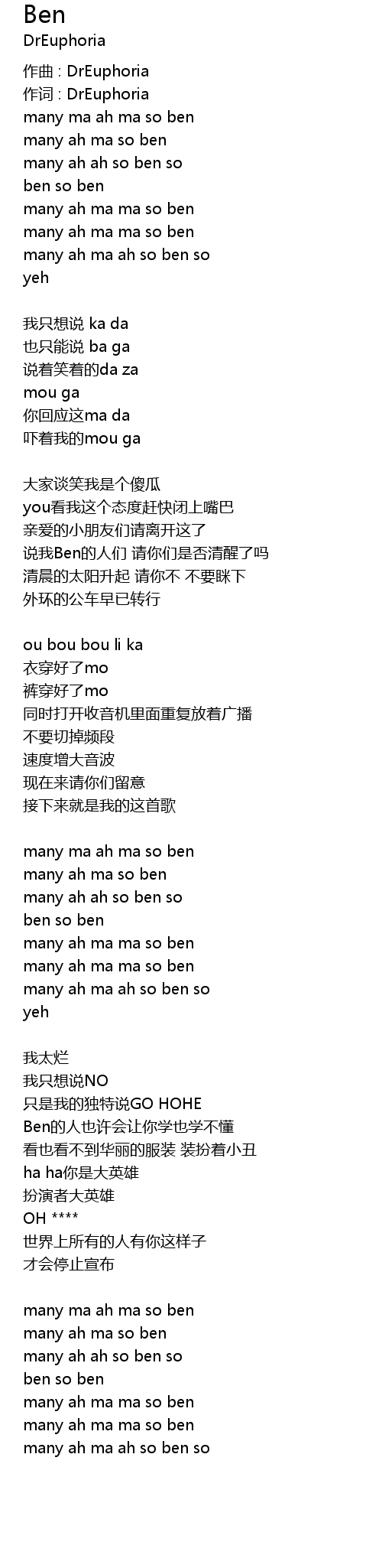 | 作词 : DrEuphoria | |