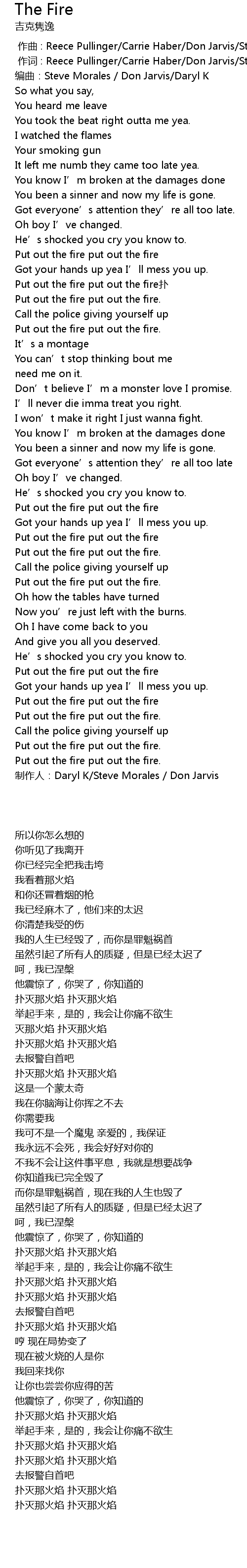 | [01:07.14] | Put out the fire put out the fire扑 |