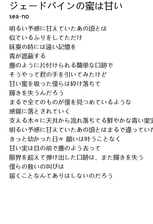 | [01:10.34] | 甘い蜜を吸った僕らは砕け落ちて |
