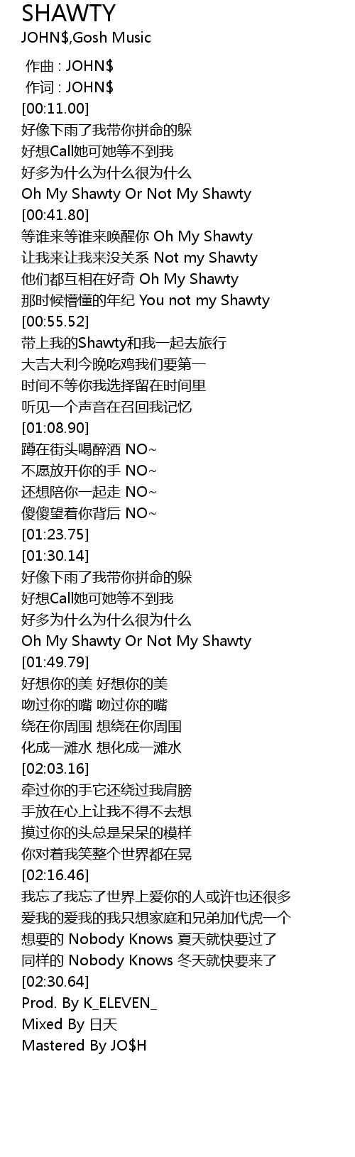 | [00:38.61] | Oh My Shawty Or Not My Shawty |