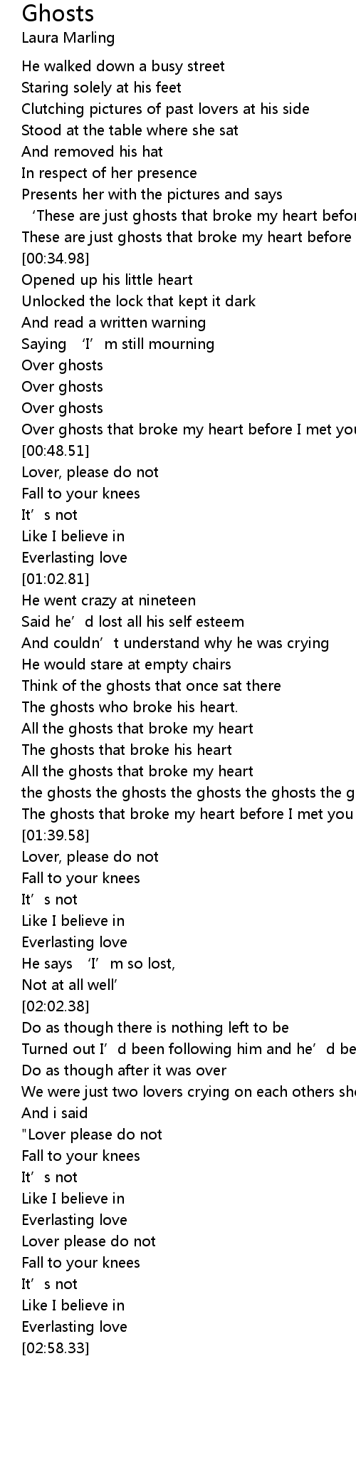 | [00:45.13] | Over ghosts that broke my heart before I met you' |