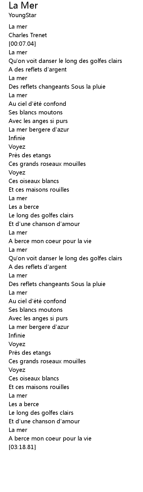 | [02:50.39] | La mer |
