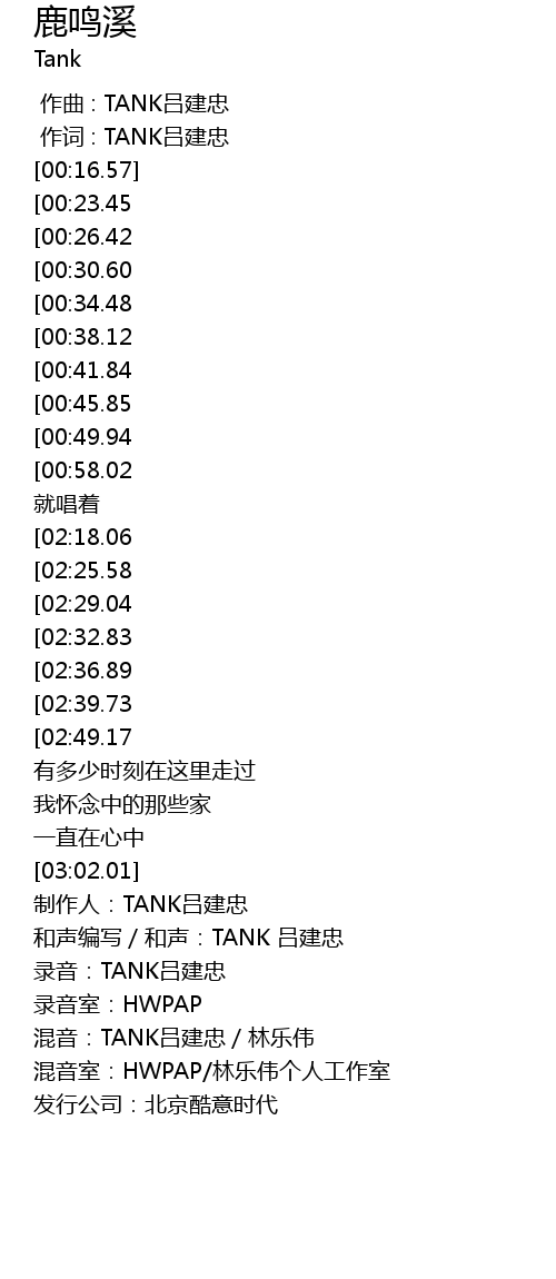 | [00:01.000] | 作词 : TANK吕建忠 |
