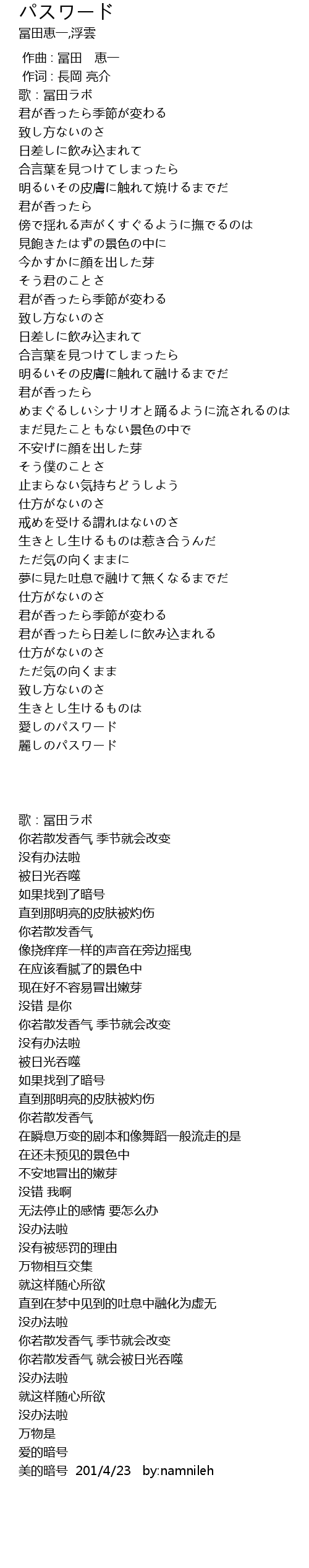 | [03:48.11] | 美的暗号 201/4/23 by:namnileh |