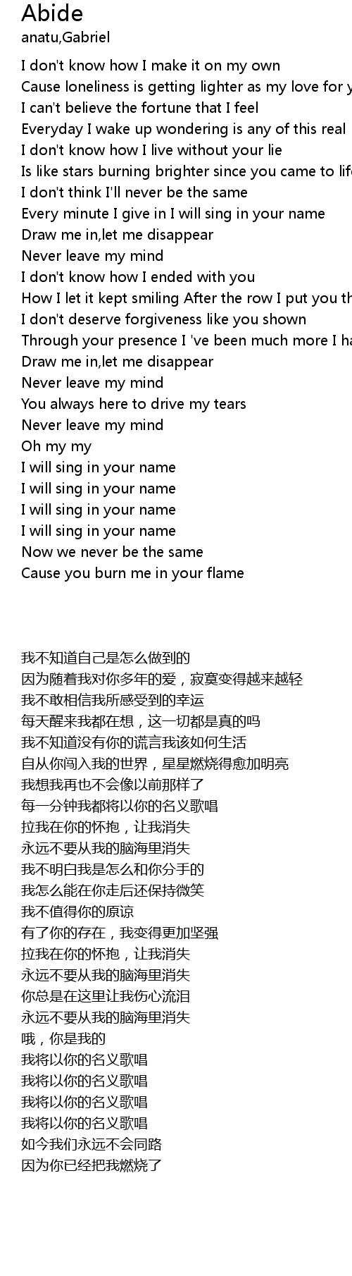 Never leave my mind |