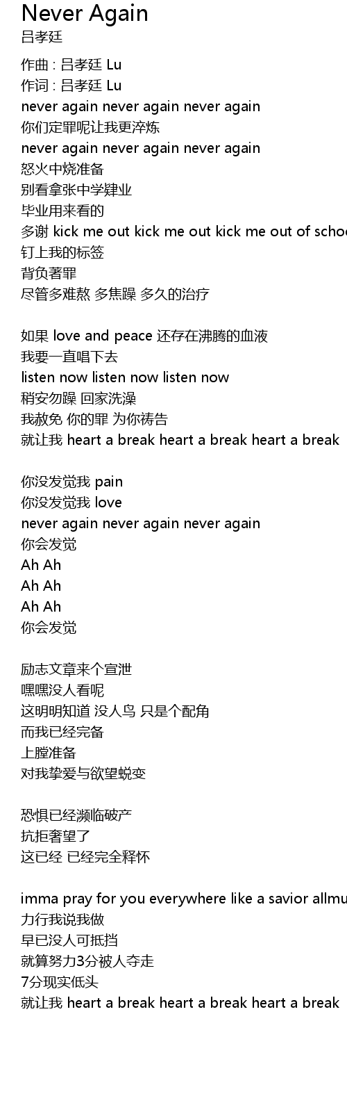 | 歌曲 | Never Again |