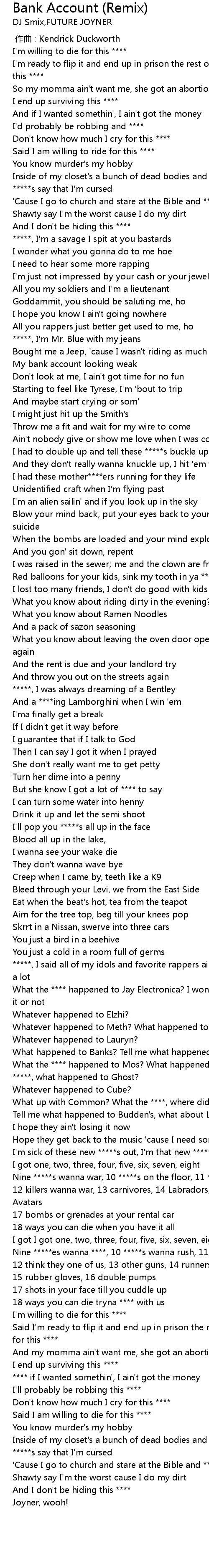 | [02:35.755] | Nine *****es wanna ****, 10 *****s wanna rush, 11 hitters on a bus |