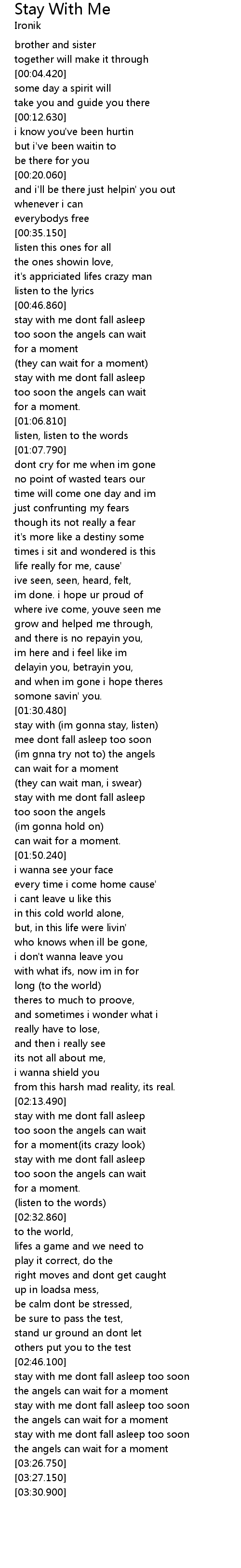stay with me dont fall asleep too soon |