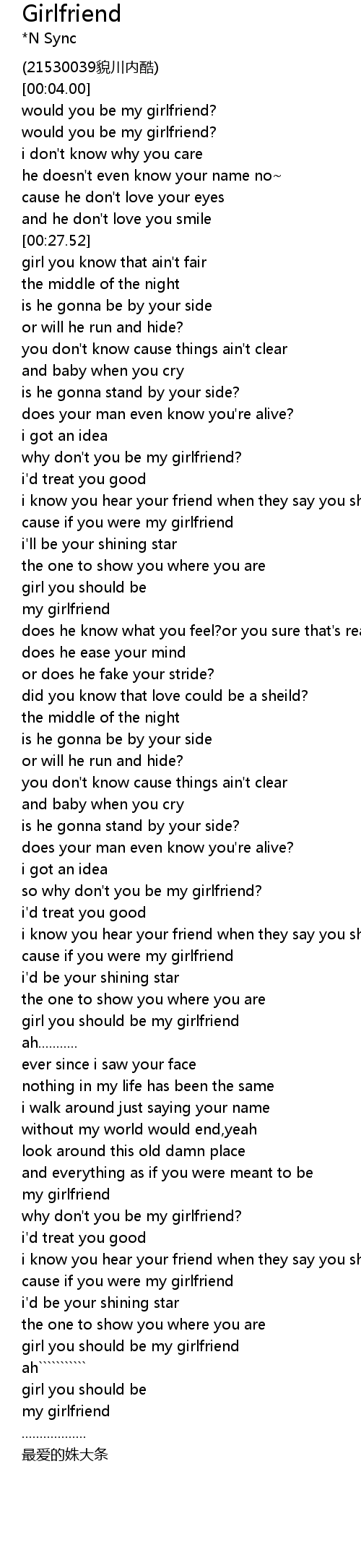 | [00:52.50] | why don' t you be my girlfriend? |