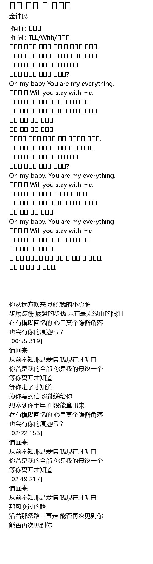 | [02:53.754] | 돌아와 줘 Will you stay with me |