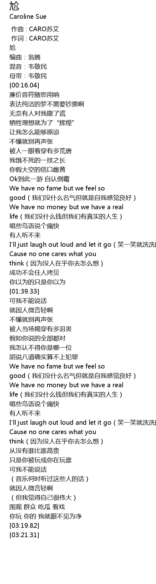| [00:00.347] | 作词 : CARO苏艾 |