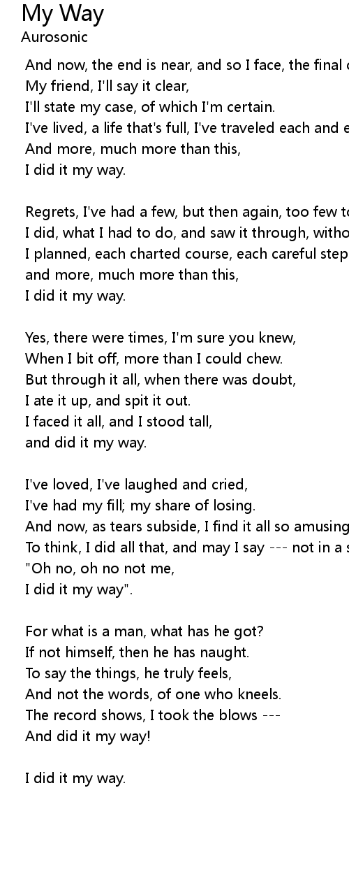 | I've lived, a life that's full, I've traveled each and every highway. | |