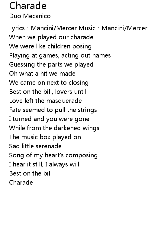 | Lyrics: Mancini Mercer Music: Mancini Mercer | |