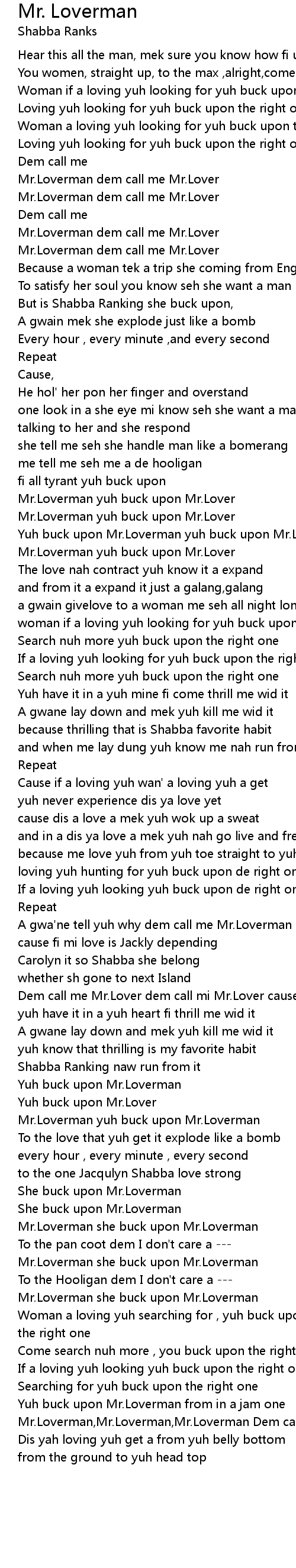 Yuh buck upon Mr.Loverman yuh buck upon Mr.Lover