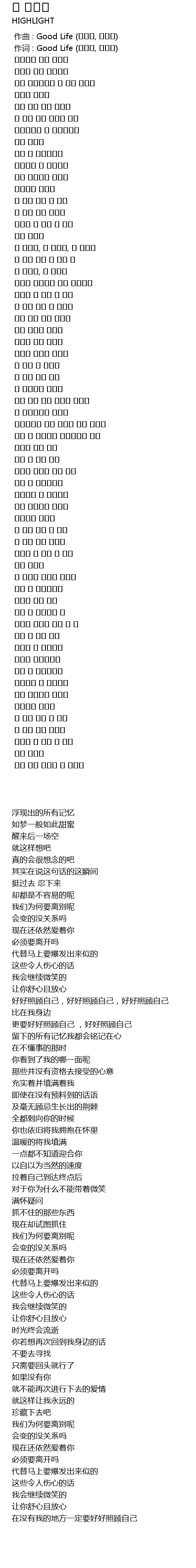 | [00:01.000] | 作词 : Good Life (용준형, 김태주) |