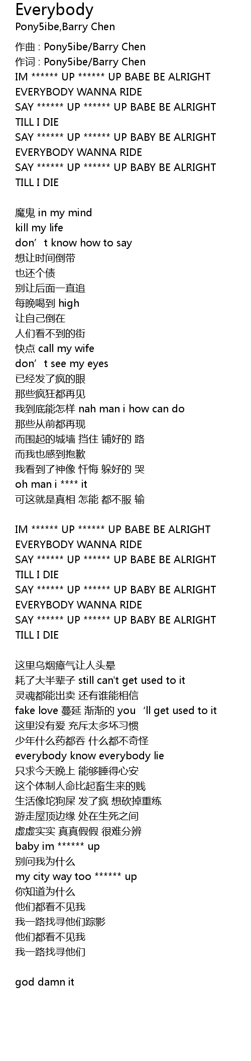| 作词 : Pony5ibe/Barry Chen | |