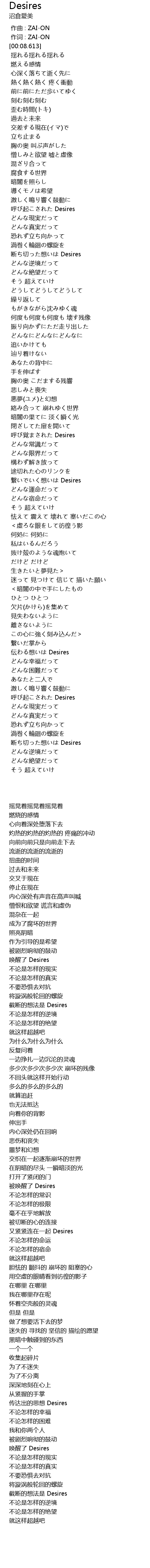| [03:41.566] | 断ち切った想いは Desires |