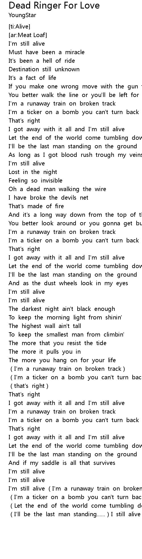 | [03:44.24] | I' m still alive I' m a runaway train on broken track |