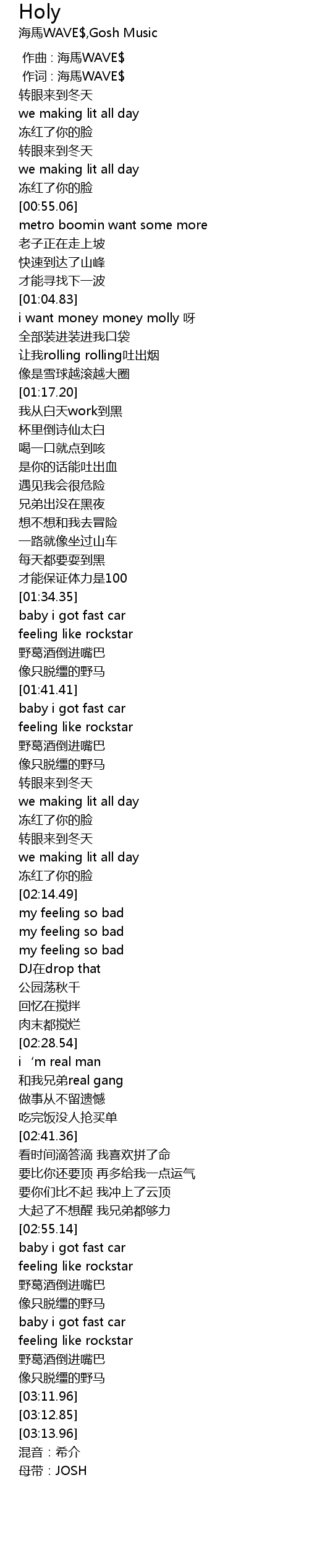 | [03:16.17] | 母带:JOSH |