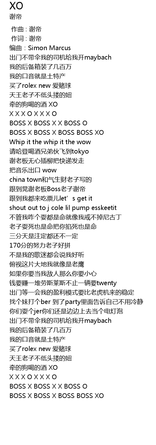 | [00:44.40] | BOSS X BOSS X BOSS BOSS XO |