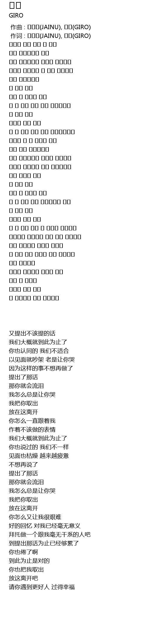| [00:01.000] | 作词 : 자이누(JAINU), 기로(GIRO) |