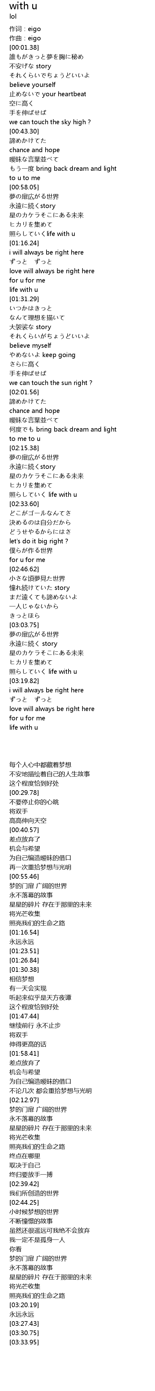 | [03:17.20] | 照らしていく life with u |