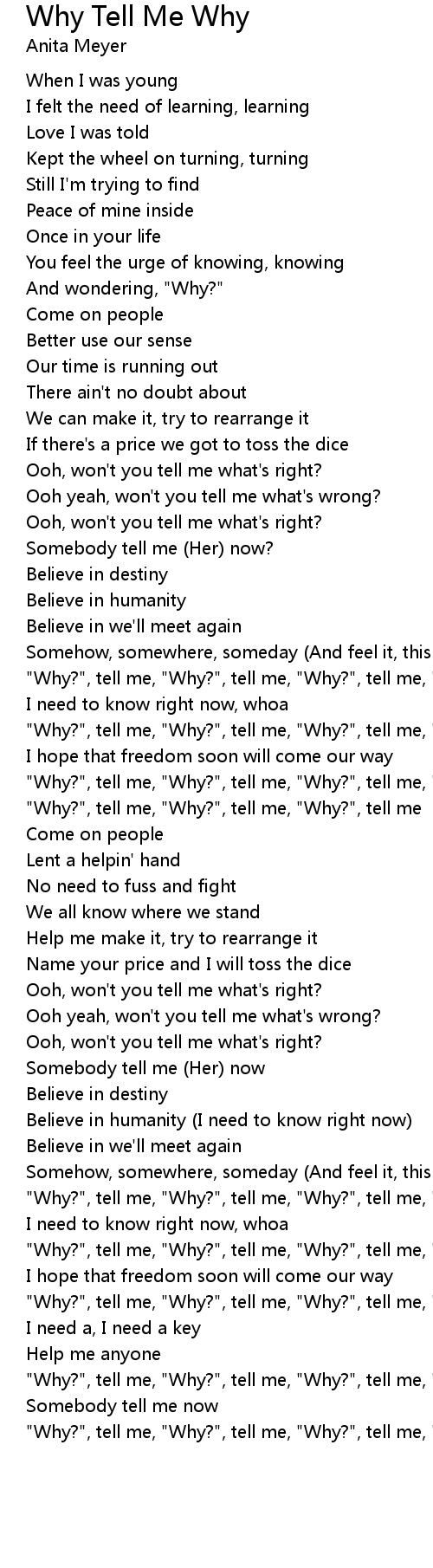 [02:00.72] "Why?", tell me, "Why?", tell me, "Why?", tell me, "Why?", tell me, "Why?", tell me, "Why?", tell me, "Why?", tell me