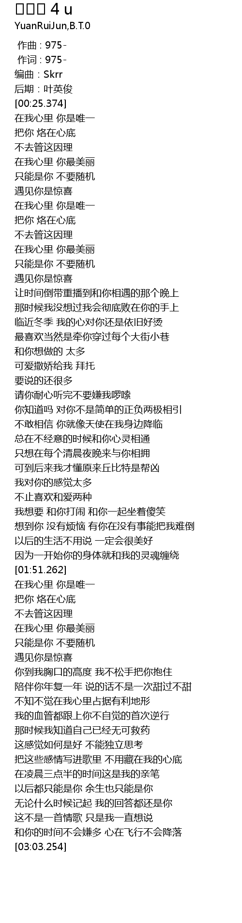 | [02:03.958] | 在我心里 你是唯一 |