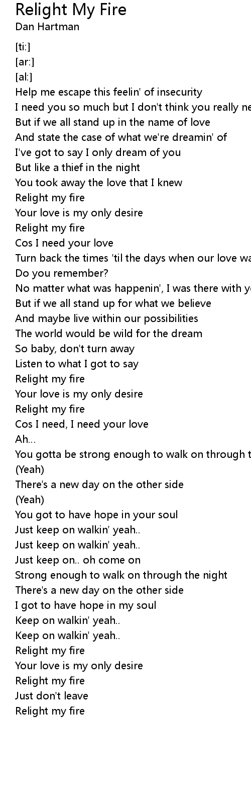 | [03:00.23] | Relight my fire |
