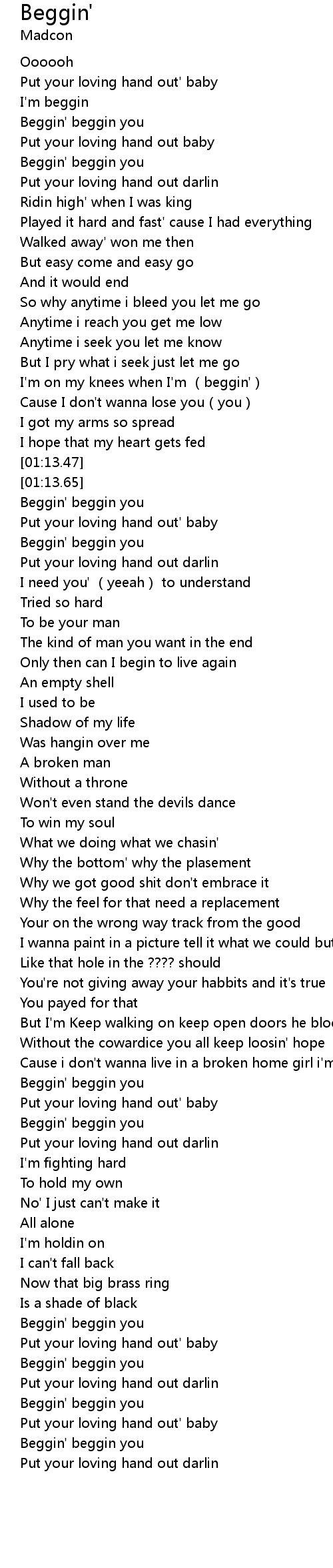 | [01:07.27] | I'm on my knees when I'm (beggin') |