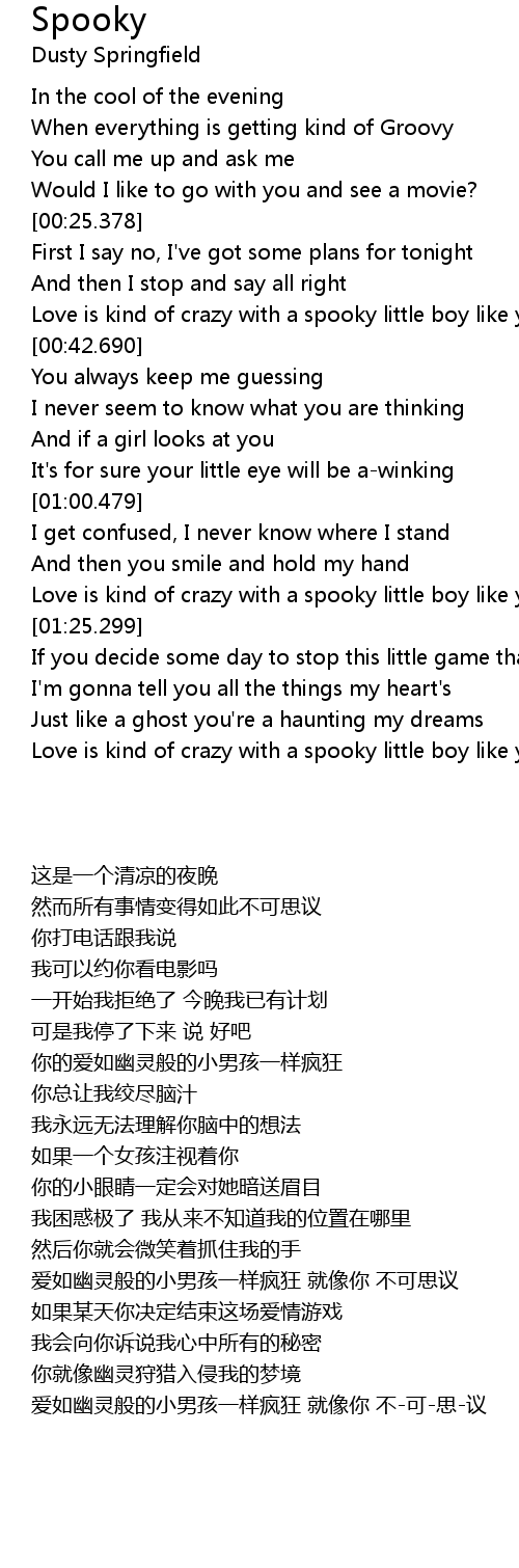 | [02:03.548] | Love is kind of crazy with a spooky little boy like you Spooky |