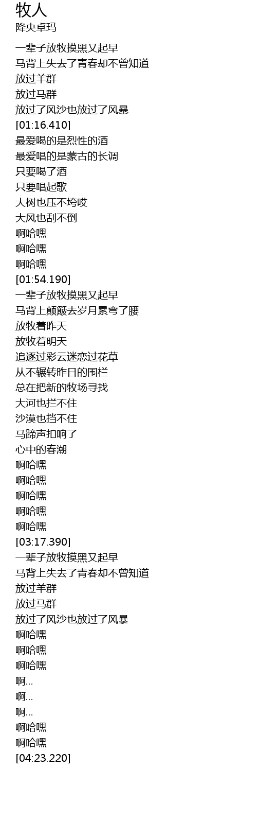 | [01:23.520] | 最爱唱的是蒙古的长调 |