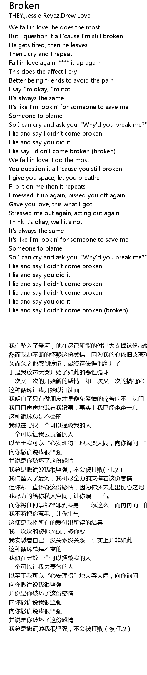 You question it all 'cause you still broken |