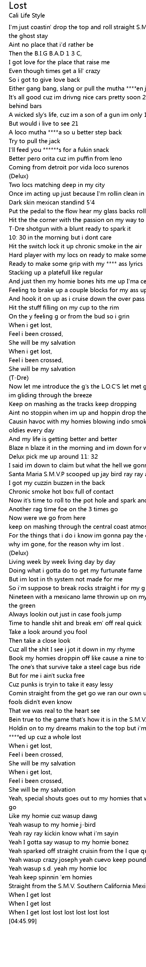 When I get lost lost lost lost lost lost |