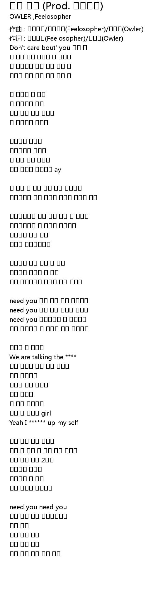 作词 : 필로소퍼(Feelosopher)/아울러(Owler)