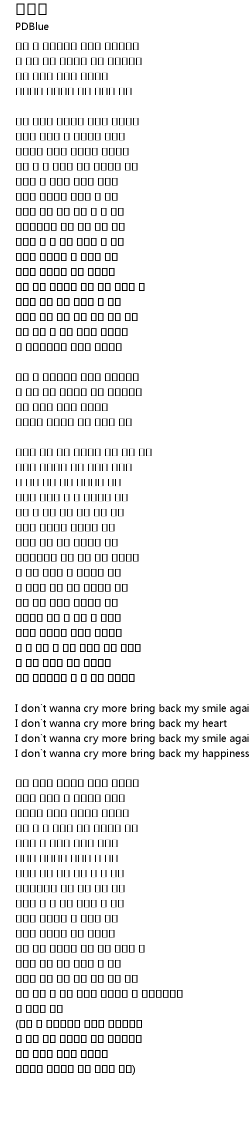 I don`t wanna cry more bring back my happiness |