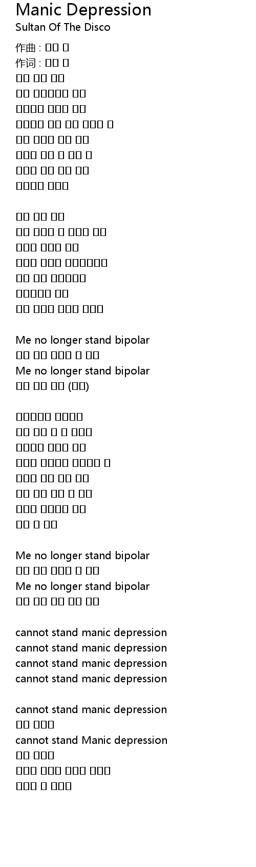 cannot stand Manic depression