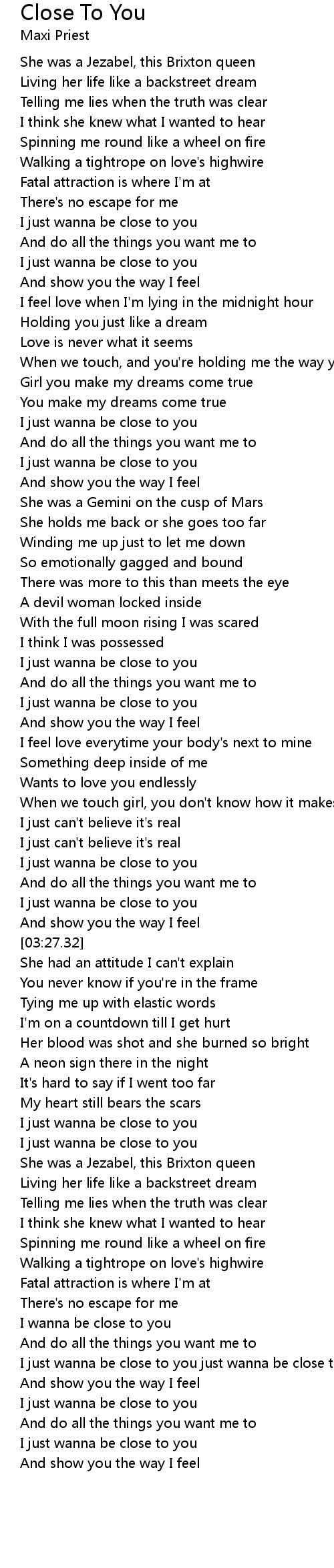 I just wanna be close to you just wanna be close to you |