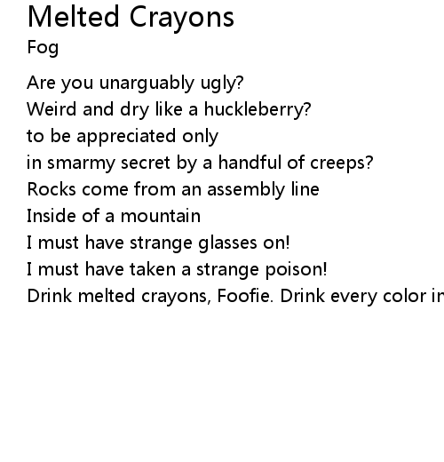 | Drink melted crayons, Foofie. Drink every color in the box. |